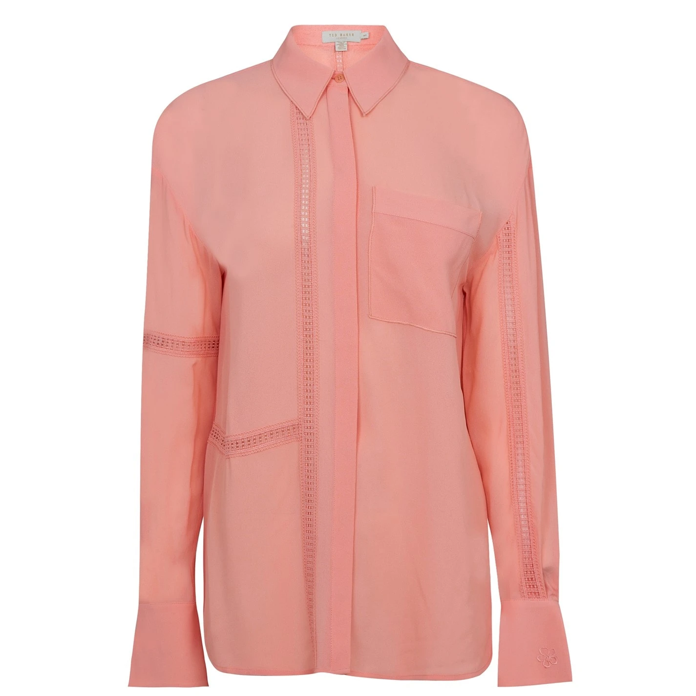 Refresh your casual attire with the Agniss Lace Shirt by Ted Baker, that is great for the summer season. Crafted from a viscose blend offering a light, breathable and comfortable fit. The shirt features a pointed collar with full button fastening, long sleeves with button cuffs, raised front hem and a chest pocket. The look is completed by lace detailing throughout the shirt for an elegant look.