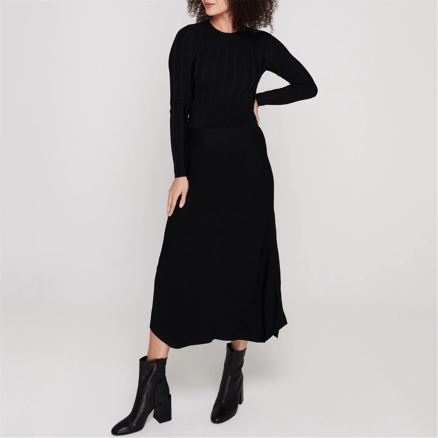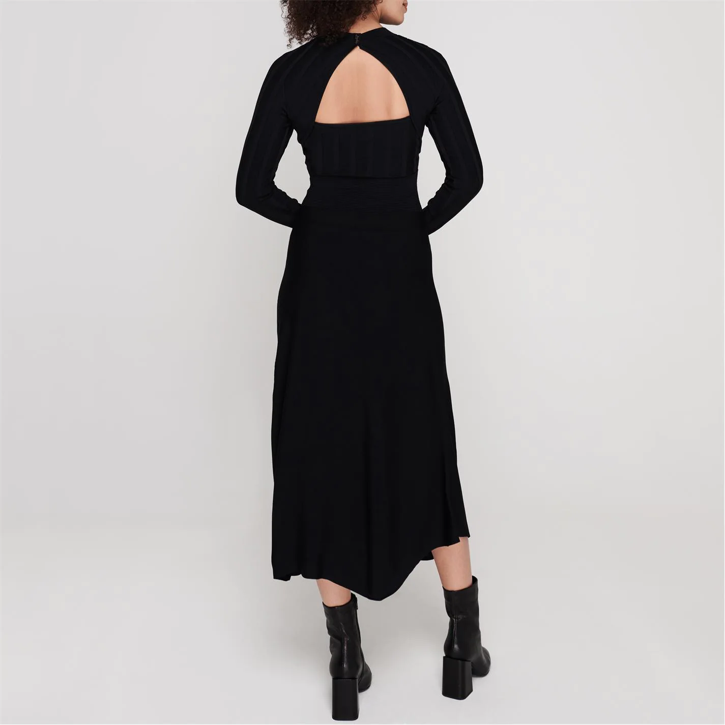 Update your evening dress collection with the Aimyy Open Back Dress from Ted Baker. Cut from a soft Viscose fabrication, this fitted dress styles a ribbed silhouette to the upper bodice for a figure-hugging look, with a long and floaty skirt for a feminine touch. Styled with an open back secured with a button fastening, this staple dress has long sleeves and a ribbed round neckline for an on-trend look. Pair this piece with gold-toned accessories and sleek heels. Composition: 73% Viscose, 26% Polyamide, 1% Elastane.