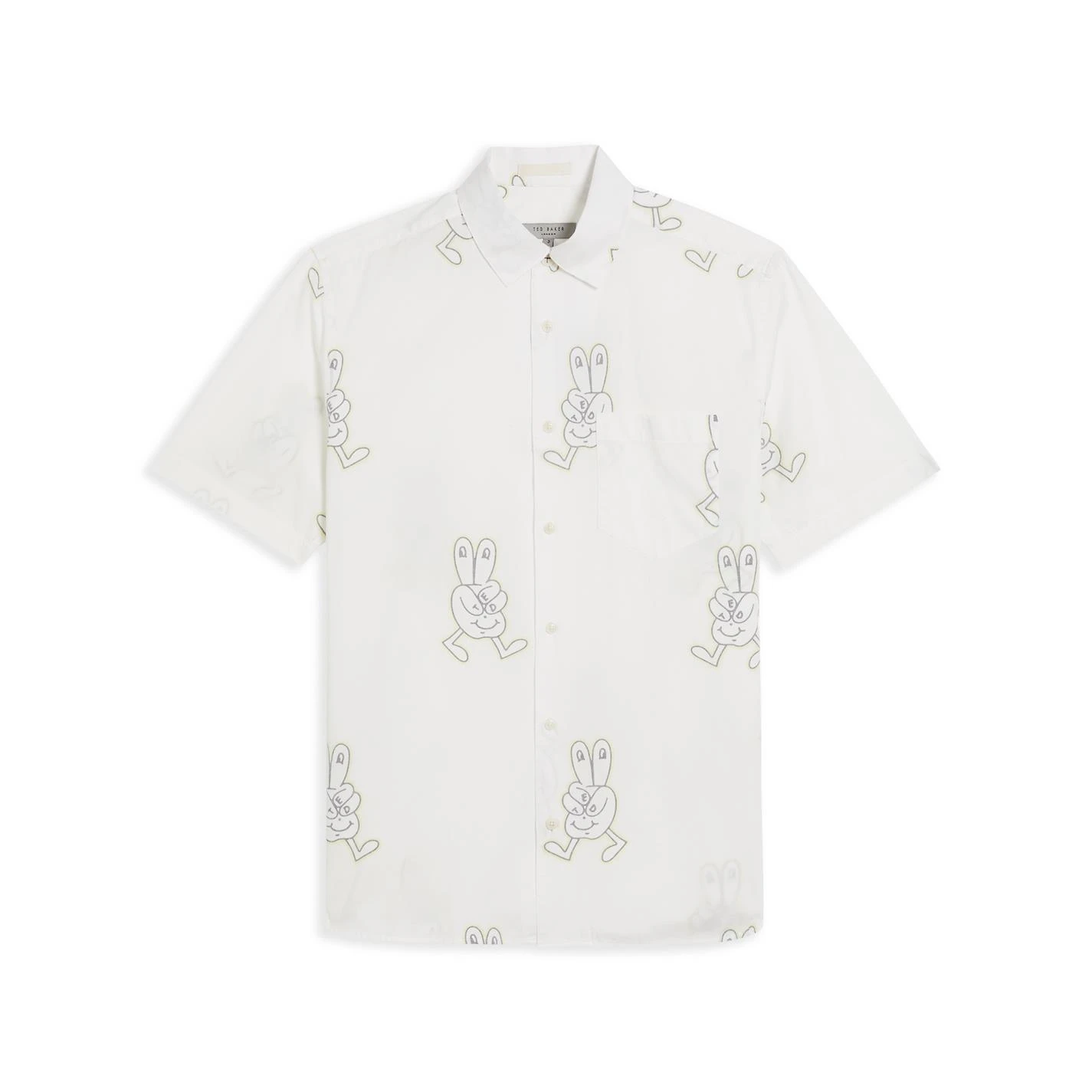 Modernise your everyday collection with the Ted Baker Arden Character Shirt. Crafted from cotton with short sleeves and a button down front fastening, this shirt will look stylish paired with jeans or straight leg trousers. The look is complete with a chest pocket detailing and an all-over character print for a contemporary aesthetic.