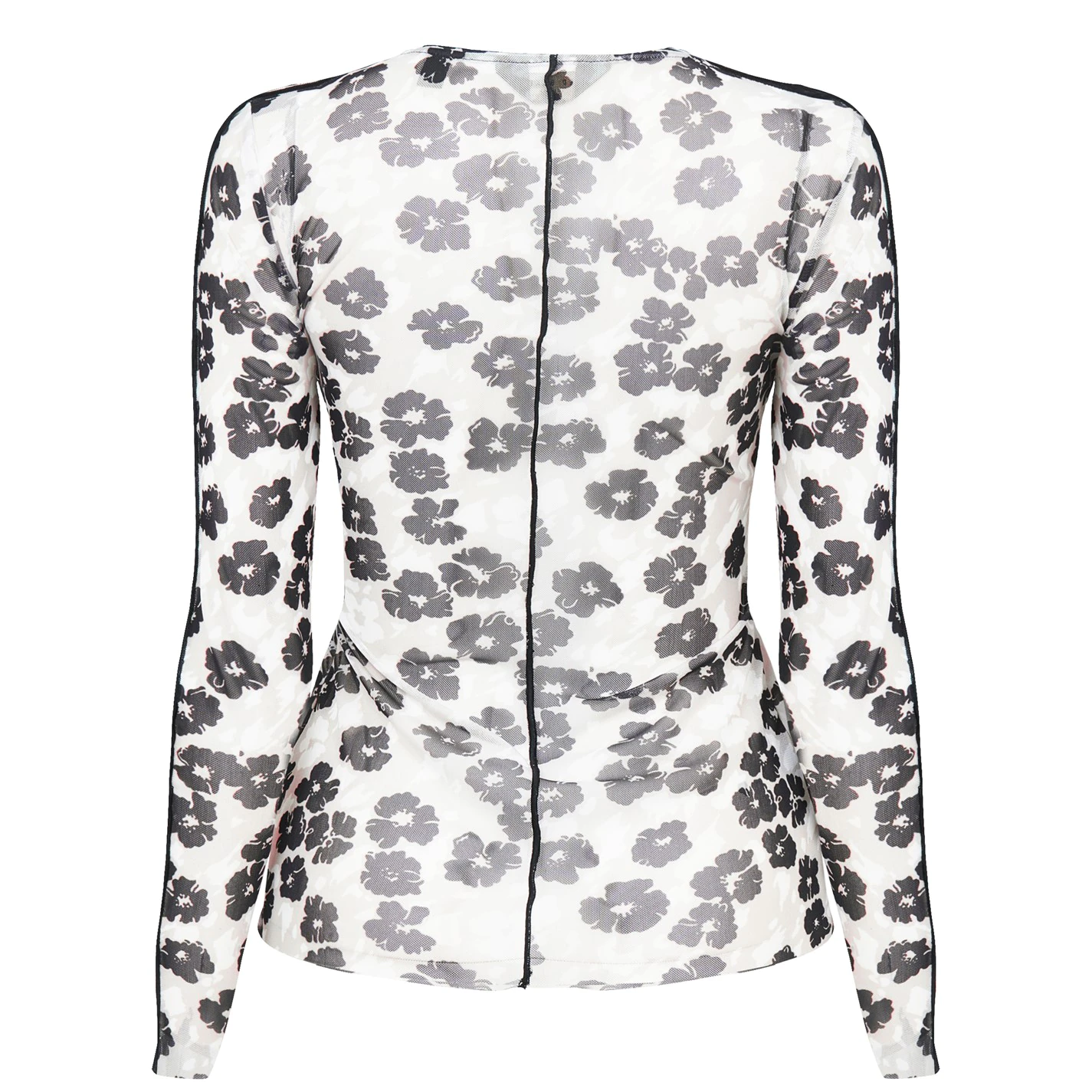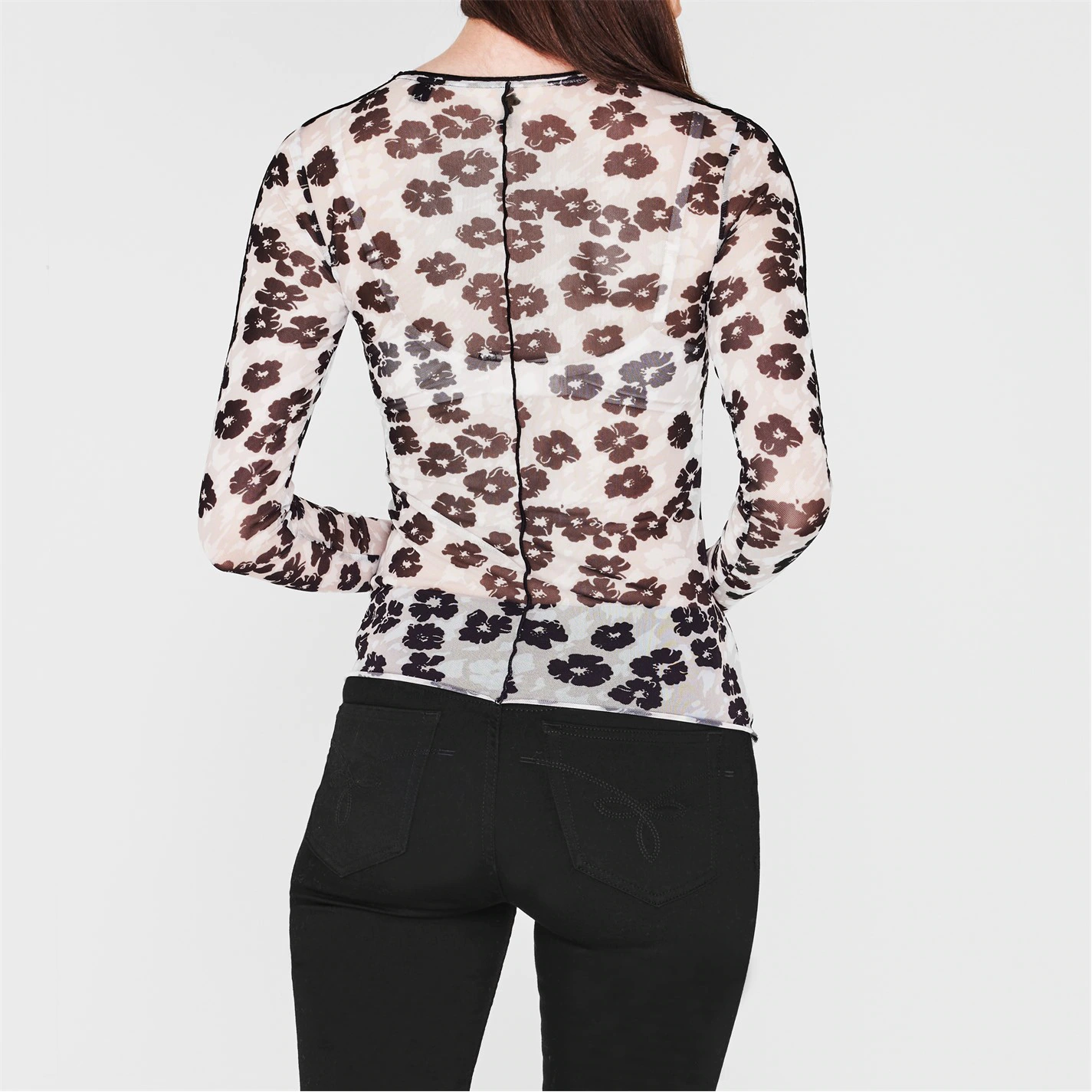 This sleek Aubriiy Top has a mix of polyester and elastic fabrics including sheer panels, long sleeves and round neck all with piping detailing. Pair with a skirt and boots for the perfect chic look. It is complete with subtle Ted Baker branding to complete the look.