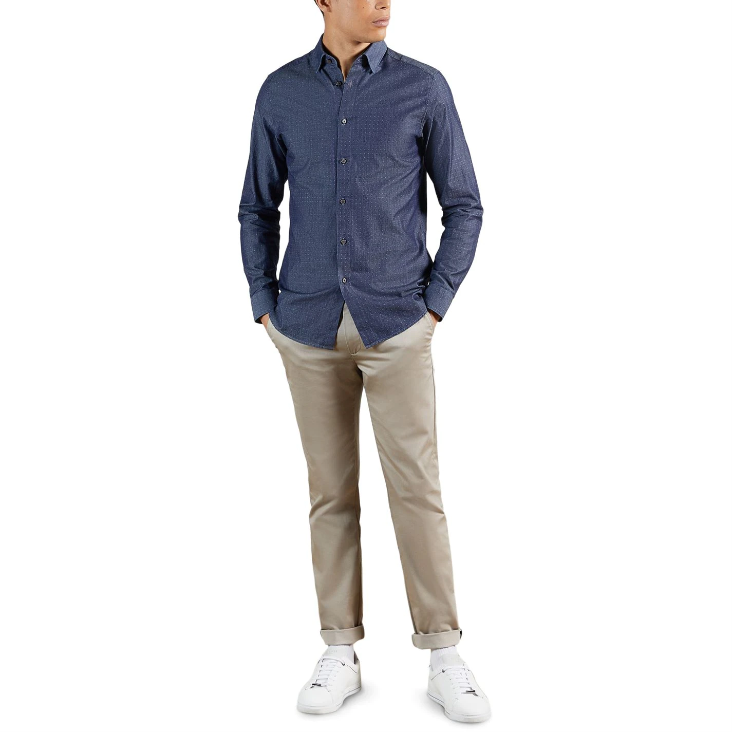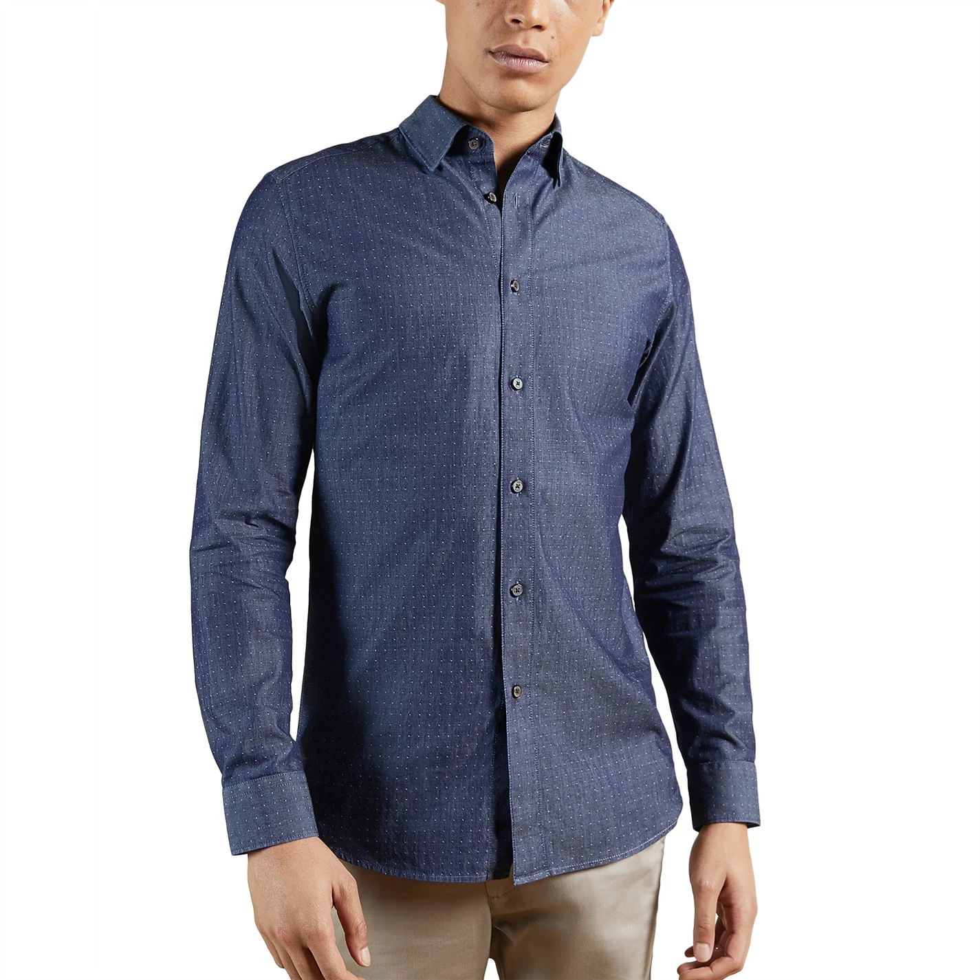 Elevate your collection with this Ted Baker Beaan Long Sleeve Shirt. Crafted with a folded collar and full button fastening for a secure fit, it features long sleeves with button cuffs for a classic look. This shirt is designed with a signature logo and is complete with Ted Baker branding.