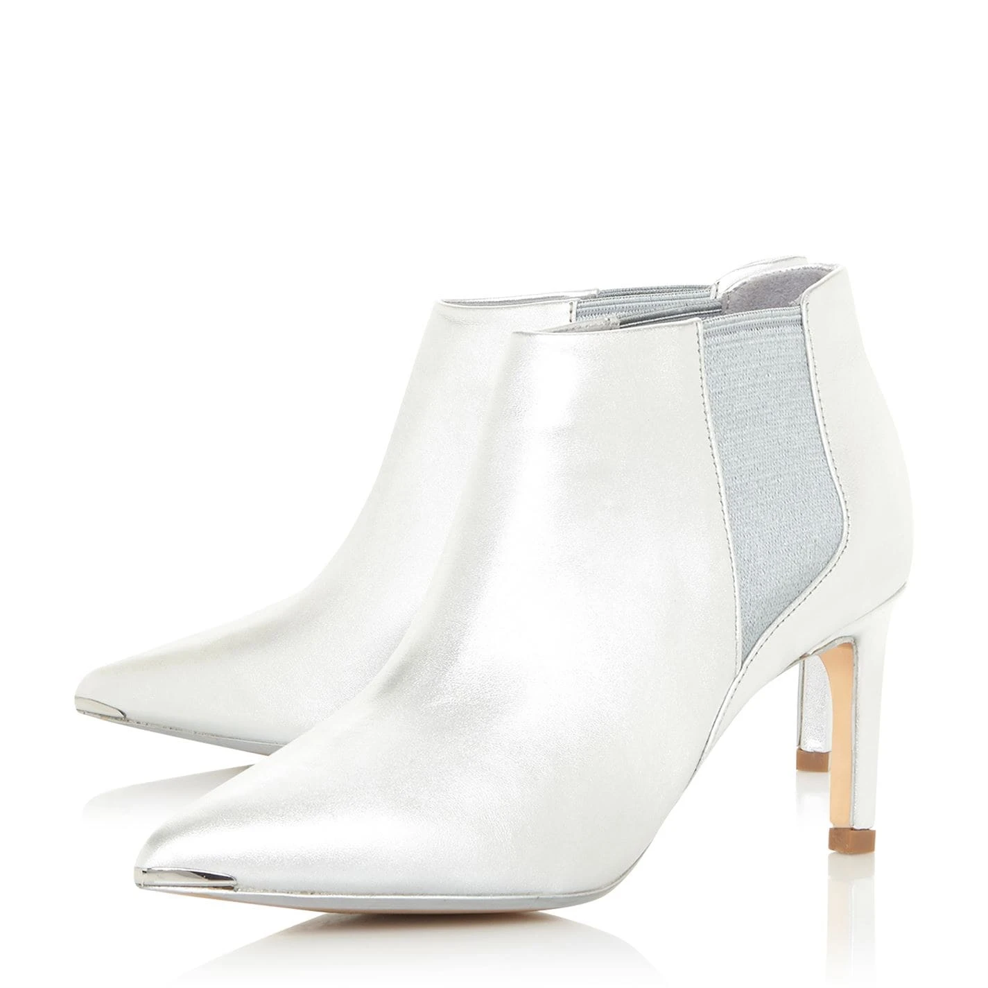 Elevate your every step with the Ted Baker Beriinl Ankle Boots. Designed with a pointed toe and stiletto heel, these leather ankle boots also feature elasticated panels for an easy on off. The metal toe cap detailing adds a luxe touch with the iconic bow detailing at the back completing the stylish high end look.