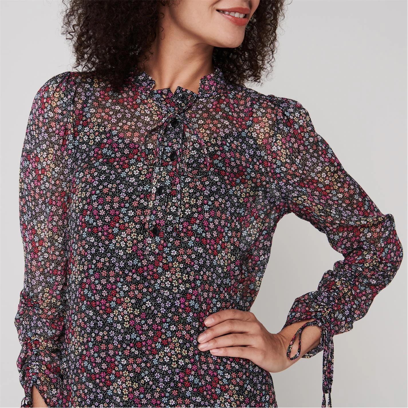 Refresh your collection with this dress from Ted Baker. Cut with long sleeves accentuated by ruched ties at the cuffs alongside a coordinating tie neckline, this dress is made from a soft viscose crepe for a comfortable wear. With a dropped hem for a feminine touch, this blouse is finished in a delicate micro floral print for a timeless appeal.