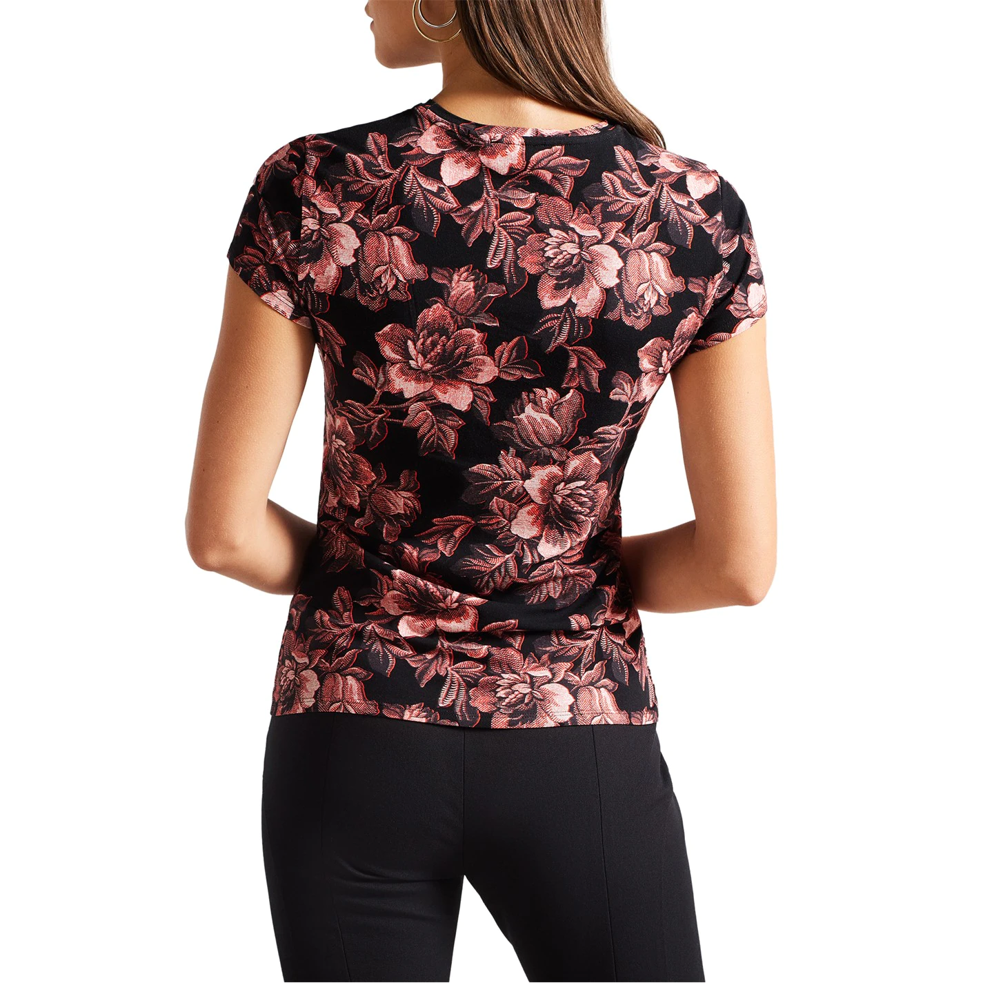 Refresh your casual attire with the Clari Print Top by Ted Baker, crafted from soft, cotton-blend for all-day comfort and has enough stretch for ease of movement. The top features a ribbed crew neck collar, cap sleeves with elasticated cuffs and the look is completed by all-over floral print.