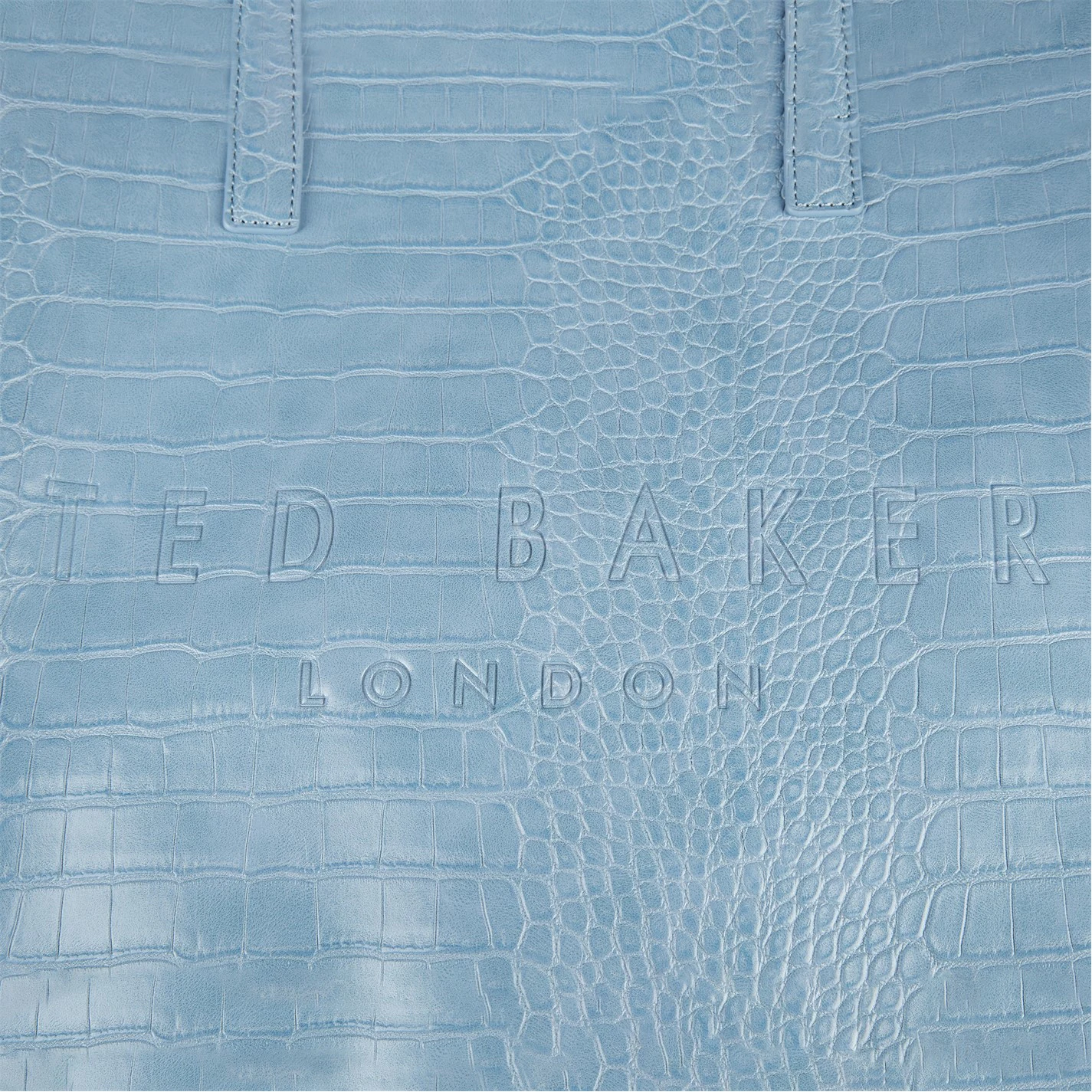 Carry your shopping or essentials in style with the Croccon Tote by Ted Baker. The bag is crafted from a faux leather using recycled materials and finished with a crocodile embossed pattern. Featuring two top handles and a internal zip compartment to store your valuables. The look is completed by Ted Baker branding to the front and the zip for instant brand appeal. Dimensions: H 35 x W 45 x D 13.5cm.