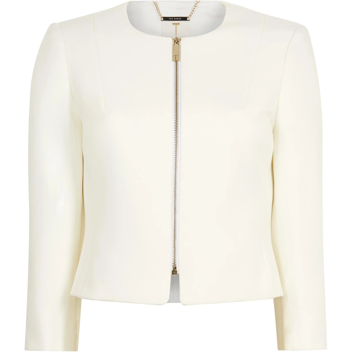 Complete your off-duty looks with the Ted Baker Eliaana Jacket. Designed with a central zip fastening with gold toned hardware, the rounded neckline and hem adds a classic look. With the minimalist design making the jacket extremely versatile, the piece is complete with Ted Baker branding for a high quality appeal.