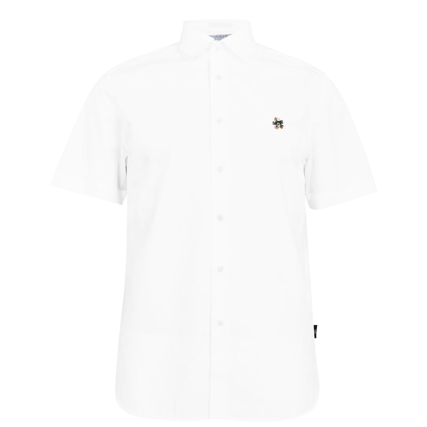 Update your collection with this Ted Baker Fonsho Short Sleeve Shirt. Crafted with a folded collar and full button fastening for a secure fit, it features long sleeves with button cuffs for a classic look. This shirt is a solid colouring throughout designed with an embroidered logo to the chest and is complete with Ted Baker branding.