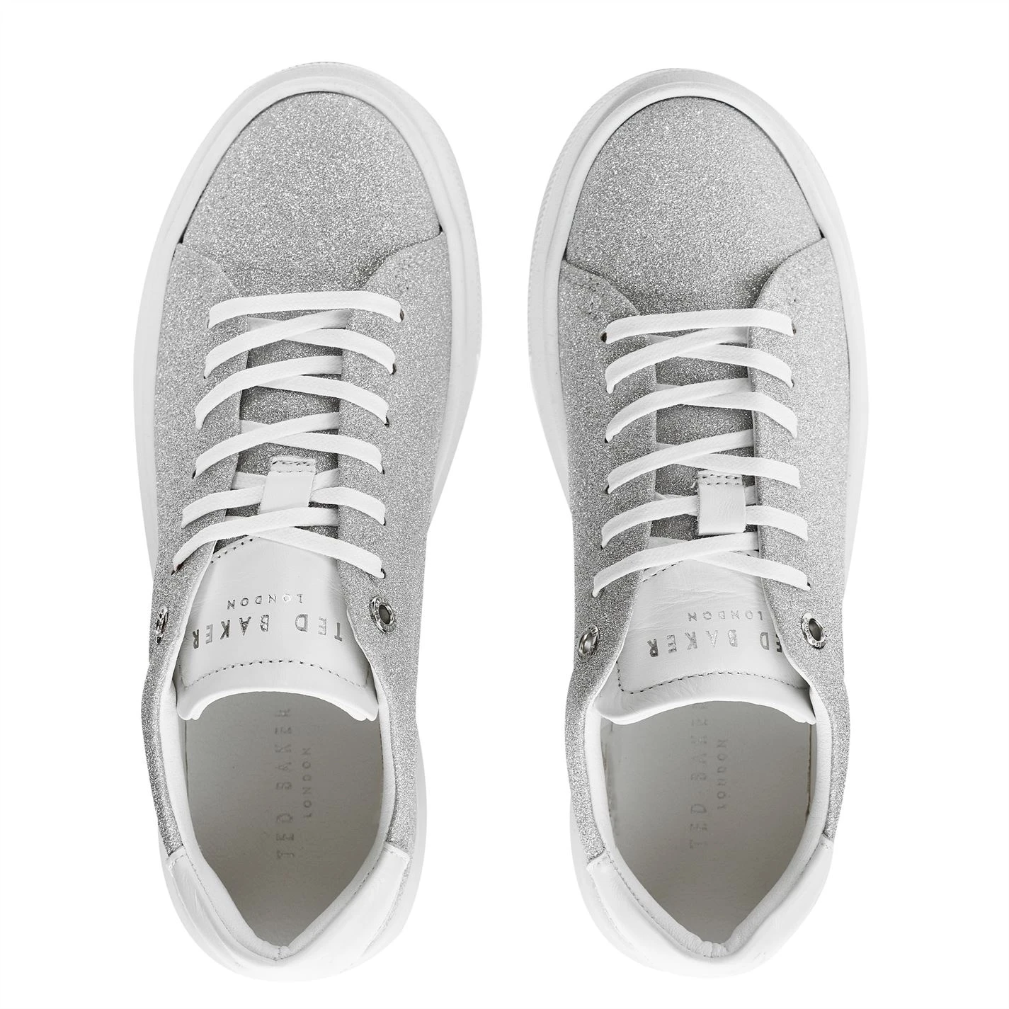 Invite a touch of sparkle to your ensemble with the Ted Baker Glitzzy Trainers. The design features a chunky flat rubber sole to help achieve a trendy look with the lace up fastening and rounded toe offering a classic aesthetic. With the cushioned moulded footbed providing a comfortable fit, the design is complete with Ted Baker branding and a glittery upper.