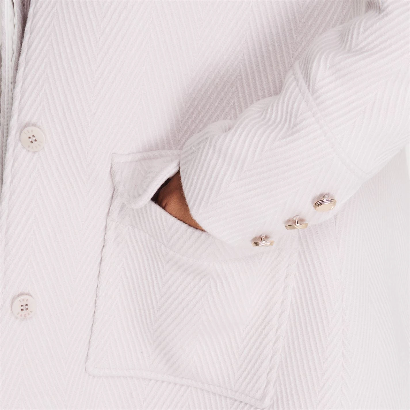 Refresh your collection with this Ted Baker Kamile Coat. Constructed with a folded collar and central button fastening for a secure fit, it features long sleeves and two hand pockets for a classic look. This coat is designed with a signature logo and is complete with Ted Baker branding.