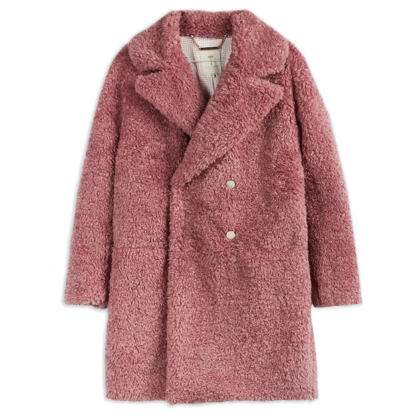 Refresh your collection with this Ted Baker Kayyti Faux Fur Coat. Constructed with a folded collar and button fastening for a secure fit, it features long sleeves and two hand pockets for a classic look. This coat is designed with a signature logo and is complete with Ted Baker branding.