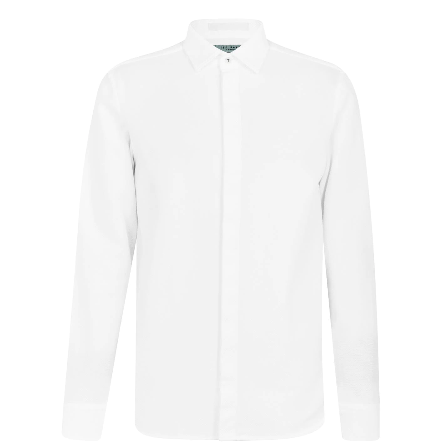 The Ted Baker Long Sleeve Topmark Shirt is a great addition to your casual wardrobe, crafted with a concealed button fastening along with a fold down collar and button fastening wrist cuffs. A thick waffle pattern fabric with tonal stitching gives simple statement look, finished off with the classic Ted Baker branding.