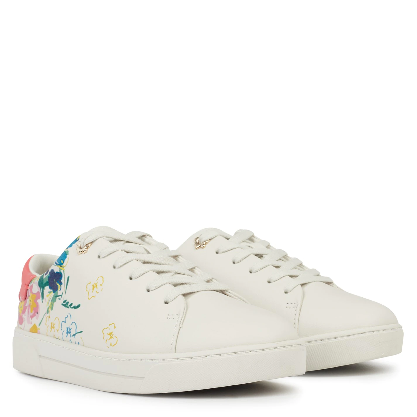 Add a feminine touch to a classic with these trainers from Ted Baker. Designed with a supple leather upper, this pair offers a contrasting heel counter for a pop of colour. Sat on a rubber sole with a lace up fastening, this pair is finished with multi-coloured flowers surrounding the back of the shoe for a summery touch.