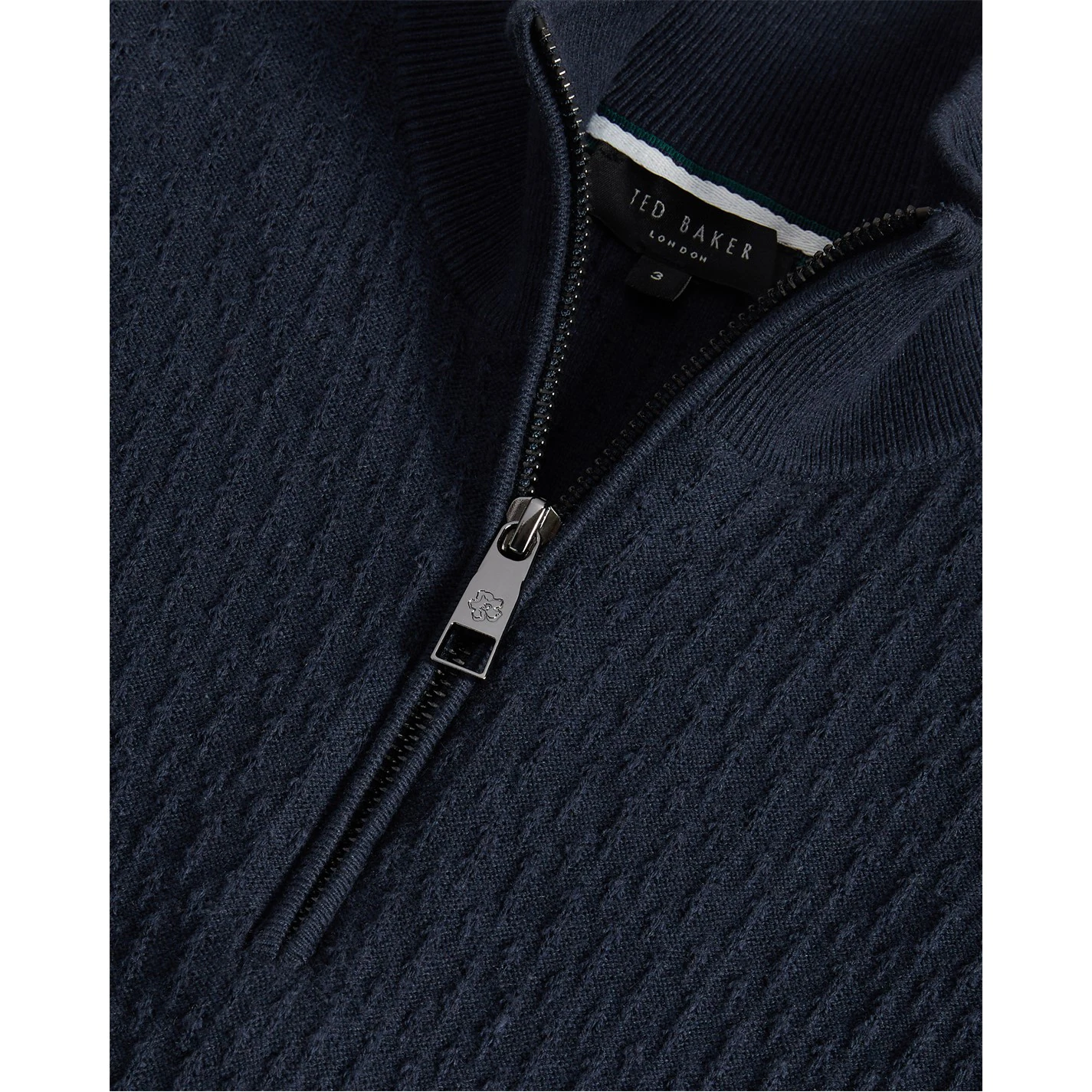 Elevate your collection with this Ted Baker Martenn Zip Top. Crafted with half zip fastening and long sleeves for a classic look, it features ribbed trims for a comfortable fit. This top is a solid colouring throughout designed with a signature logo and is complete with Ted Baker branding.