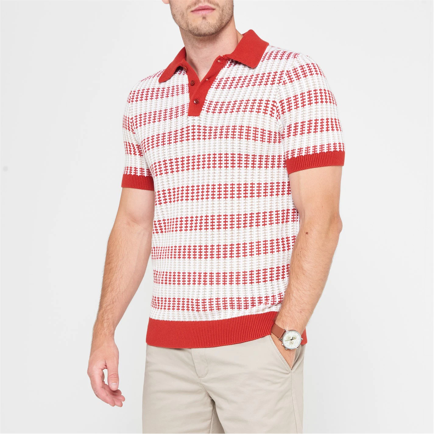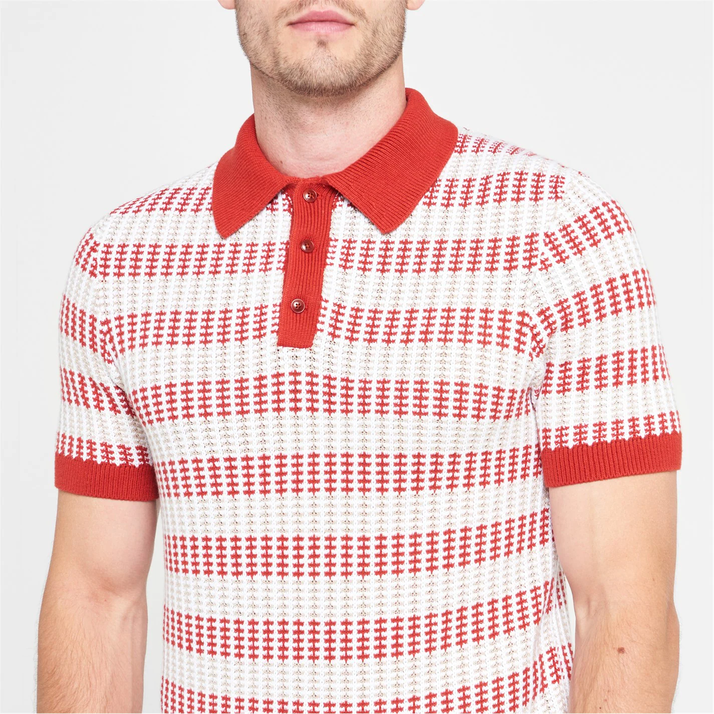 Update your casual attire with the Maynard Polo by Ted Baker, crafted in a chunky knit from a cotton and acrylic blend for everyday comfort. The polo features a ribbed collar with three button fastening, short sleeves with ribbed cuffs and hem. The look is completed by contrast stripe detailing knitted all-over and the iconic Ted Baker logo embroidered to the hem for a high quality appeal.