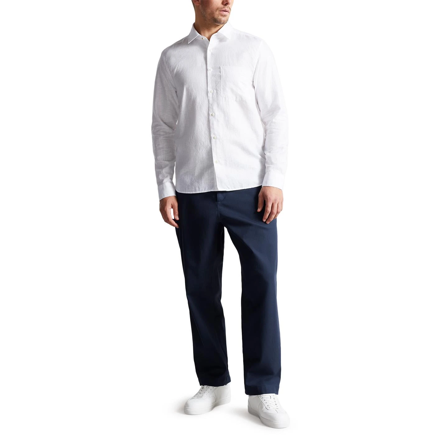 Elevate your staple collection with this Remark Linen Shirt by Ted Baker, crafted from a linen and cotton blend for a lightweight design and comfort lasting all-day. The shirt features a classic collar, full-button fastening, button cuffs and chest pocket. The look is complete by the signature Ted Baker flower logo embroidered n the chest pocket for subtle brand recognition.