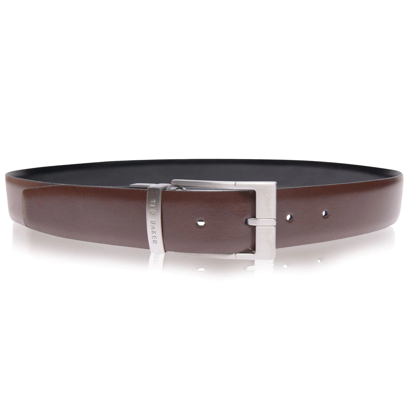 Elevate your collection with this Ted Baker Reversible Belt. Crafted with a metal fastening buckle and a belt loop for a classic look, it features multiple holes for a personal fit. This belt is a reversible design with an embellished logo and is complete with Ted Baker branding.