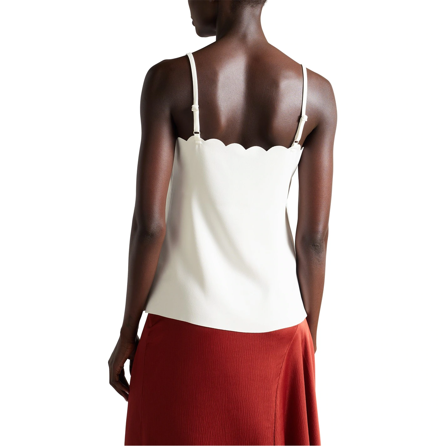 Enhance your collection with this Ted Baker Siina Cami Top. Constructed in a sleeveless style with adjustable shoulder straps and a crew neckline with a scalloped edge for a classic look, it features elasticated hems for a comfortable fit. This top is a solid colouring throughout and is complete with Ted Baker branding for a high quality appeal.