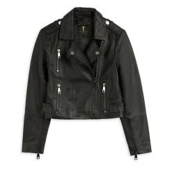 Invest in your outerwear selection with the Ted Baker Ssalli Biker Jacket. Crafted from premium ovine leather with a poly lining, this biker jacket comes styling shiny metal hardware and a cropped silhouette. The look also features two side pockets to keep your essentials handy and waist tabs. Pair with a midi dress and ankle boots for the perfect autumnal ensemble.