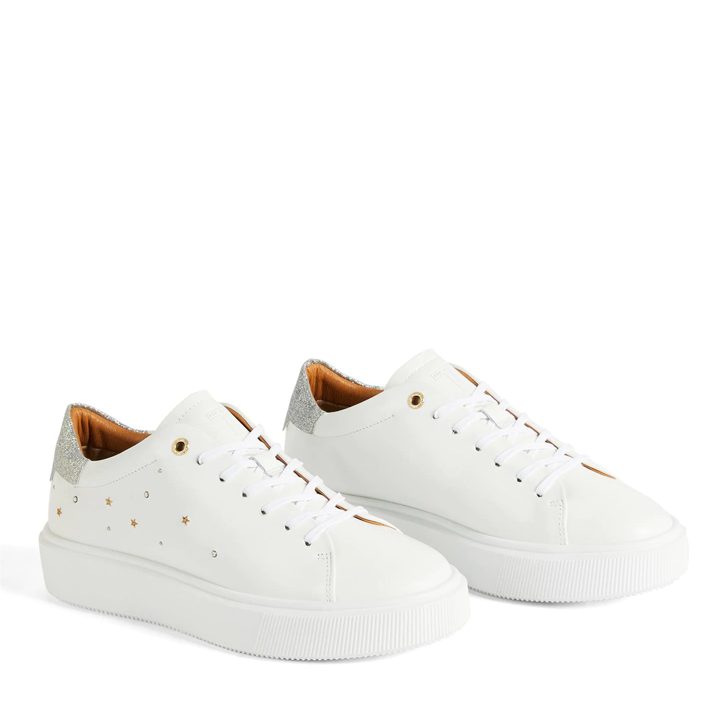 The Ted Baker Starriy Star Trainers are a great addition to your casual wardrobe, crafted with a low profile ankle collar coupled with a lace fastening that provides a secure fit, while a cushioned insole that ensures all day comfort. A contrasting panel to the heel along with tonal stitching gives a stylish look, completed with the Ted Baker branding. Please note: The style you receive may vary from the image shown.