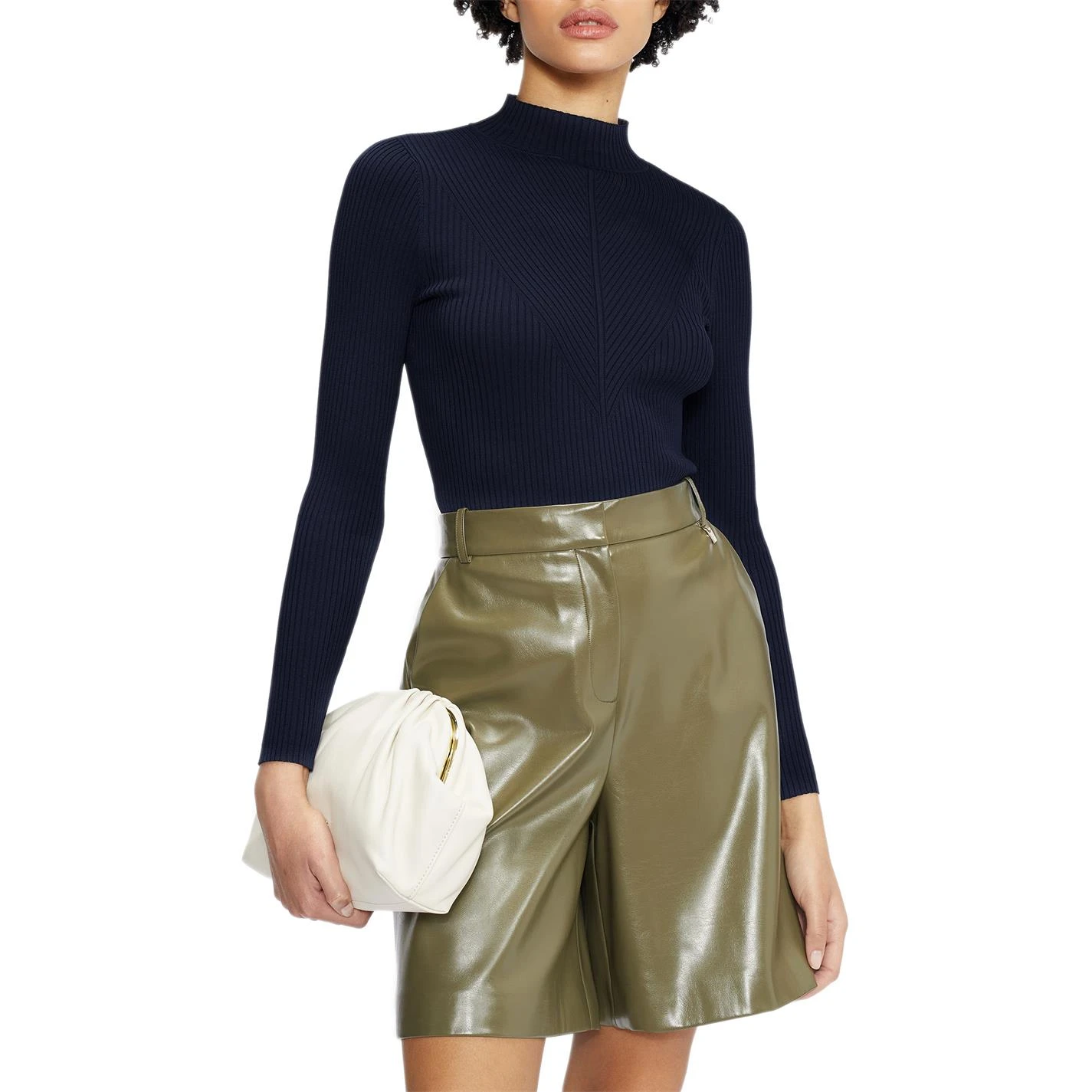 The Taralyn Sweater from Ted Baker with high neckline and ribbed body that contours your shape. The long sleeve design is elegantly feminine pair with mini skirt and knee high boots for an autumnal look.