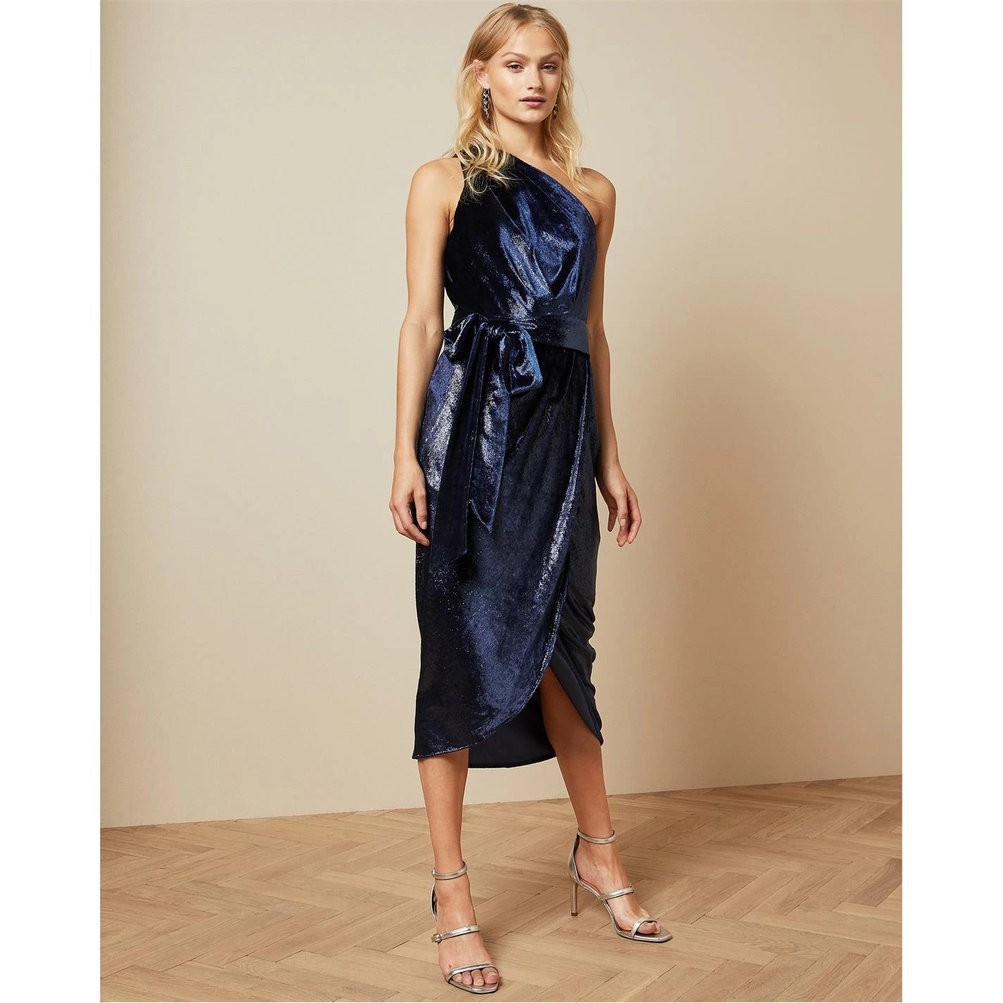 Make a statement in the Ted Baker Midi Dress. Designed in a wrap silhouette for a flattering fit, this stunning dress comes styling a waist tie fastening and one shoulder construction.