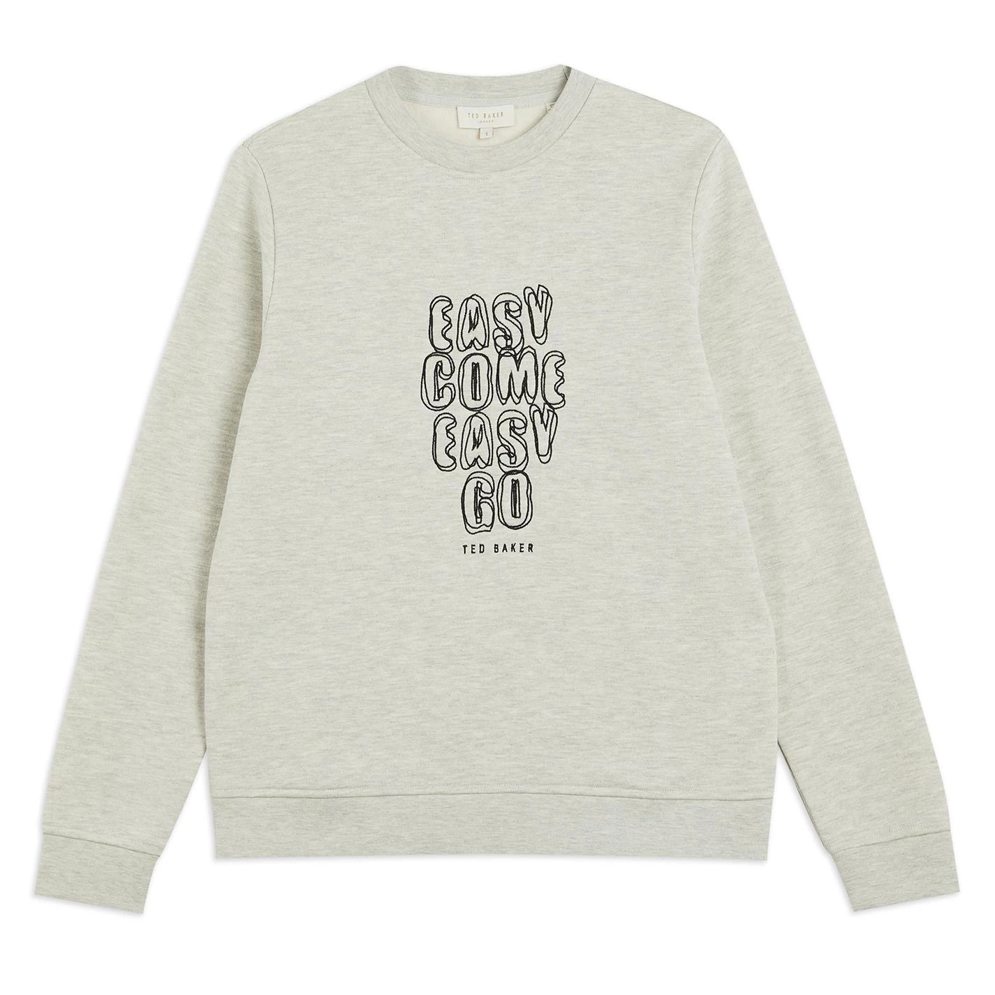 Finish your casual collection with this stylish and versatile sweatshirt from Ted Baker. Ideal for day to day wear, the jumper styles a crew neck, long sleeves and cuffed hems for added comfort. Adorned with a solid block colour, the sweater is then finished with a playful Easy Come Easy Go font printed to the chest, complete with Ted Baker branding for a high quality appeal.