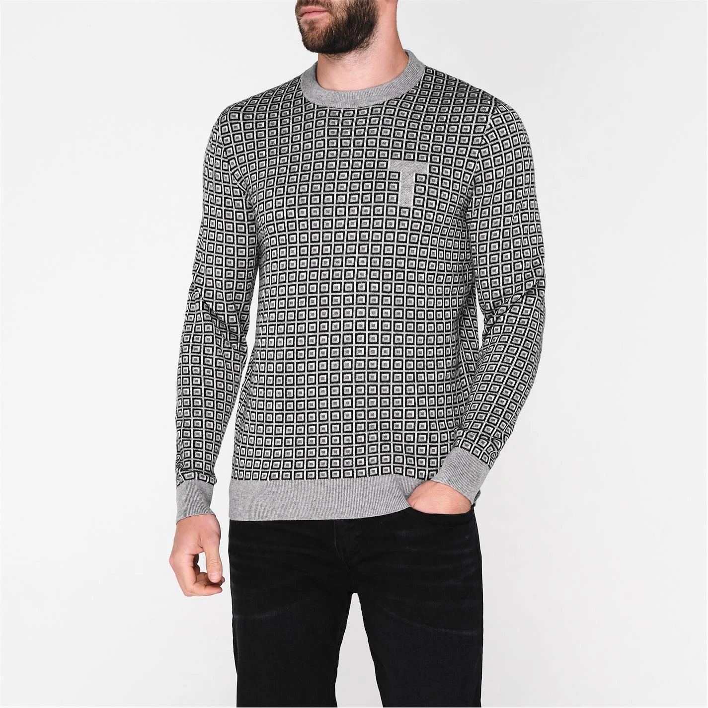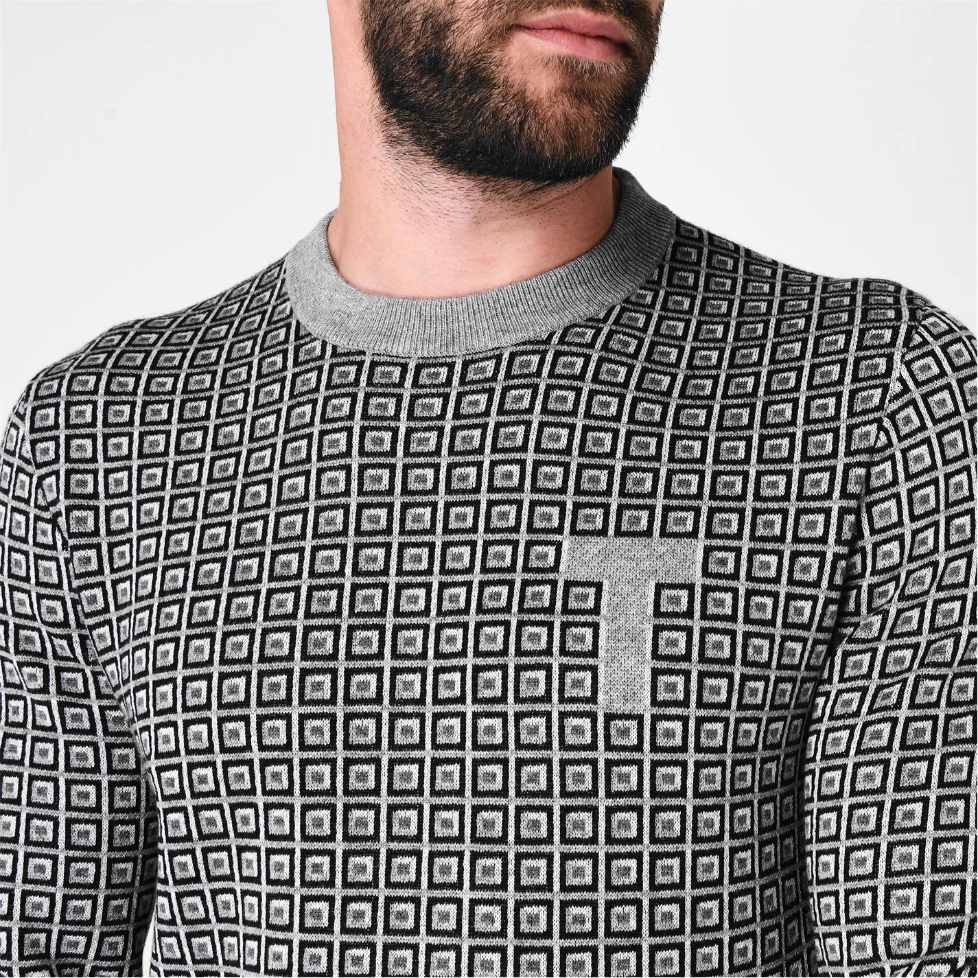 Upgrade your smart casual attire with this sleek and on trend sweater from Ted Baker. Adorned with a T monogram graphic patterning throughout, the Spring Sweater features a crew neckline, long sleeves, ribbed trims and monochromatic colour scheme. Finished with a T logo embroidered to the chest, this luxury piece has been crafted from 40% Polyester, 30% Acrylic, 20% Polyamide and 10% Wool.