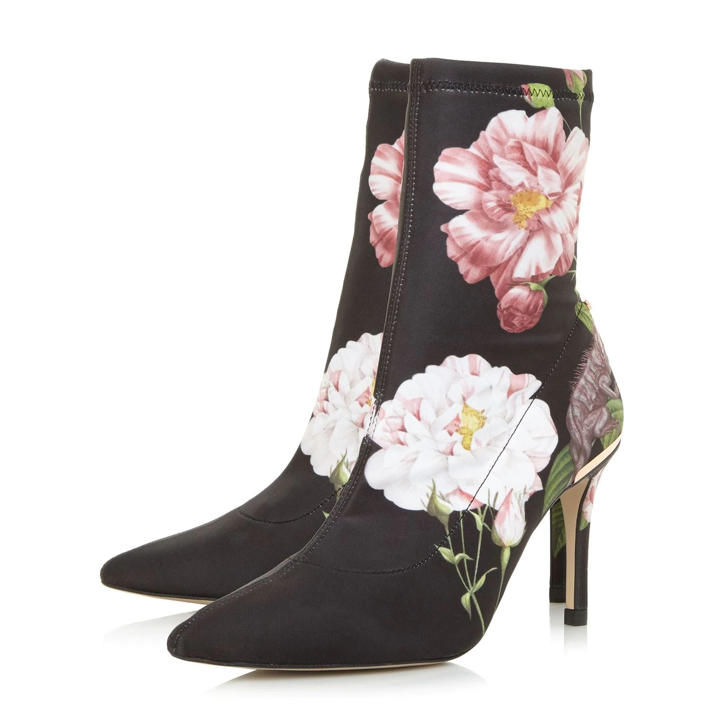 Ted Baker is the ultimate brand for new-season, high-impact style. These sock boots are an all over floral print for a botanical spin with a pointy toe and high heel.
