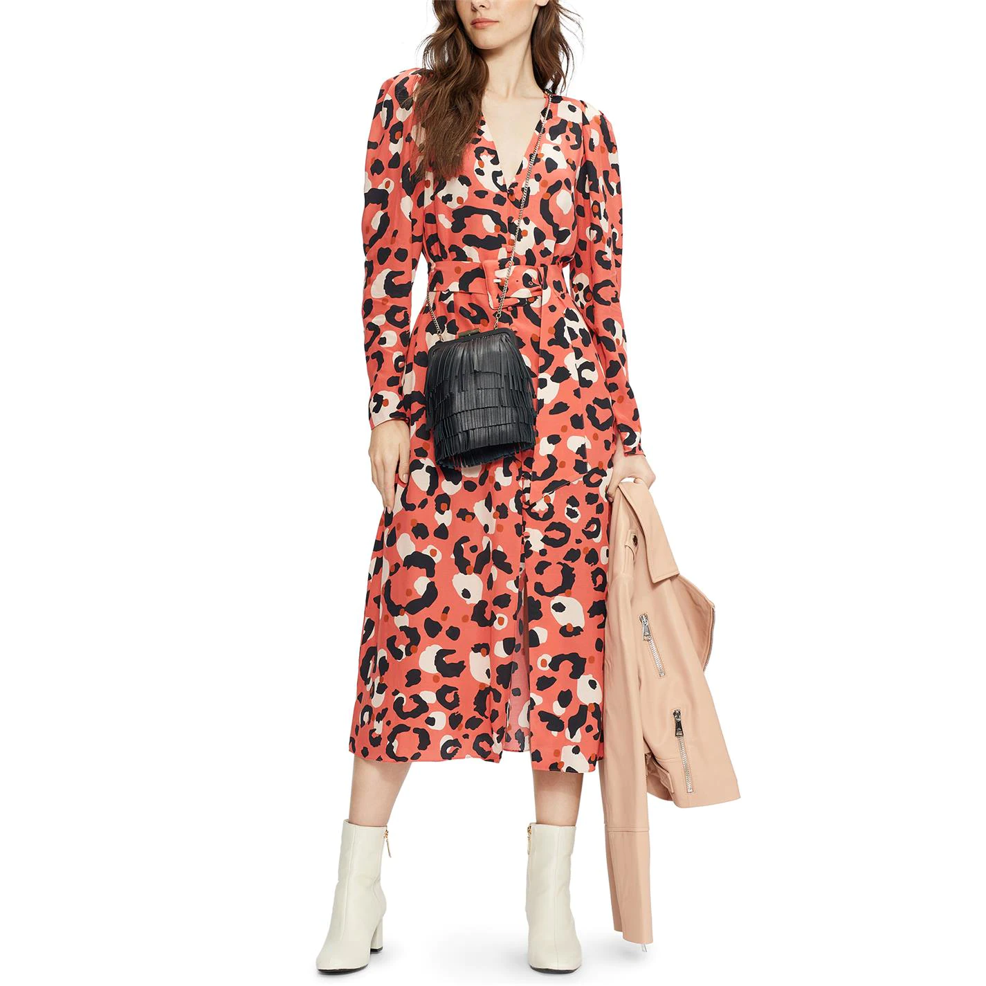 Ted Baker knows how to create wearable forever dresses, whatever the season or occasion. This Isbeil ensemble is a midi length, with V neck and long sleeves in an A line cut. Designed with an all over leopard print for the nod to the animal trend for added style points.