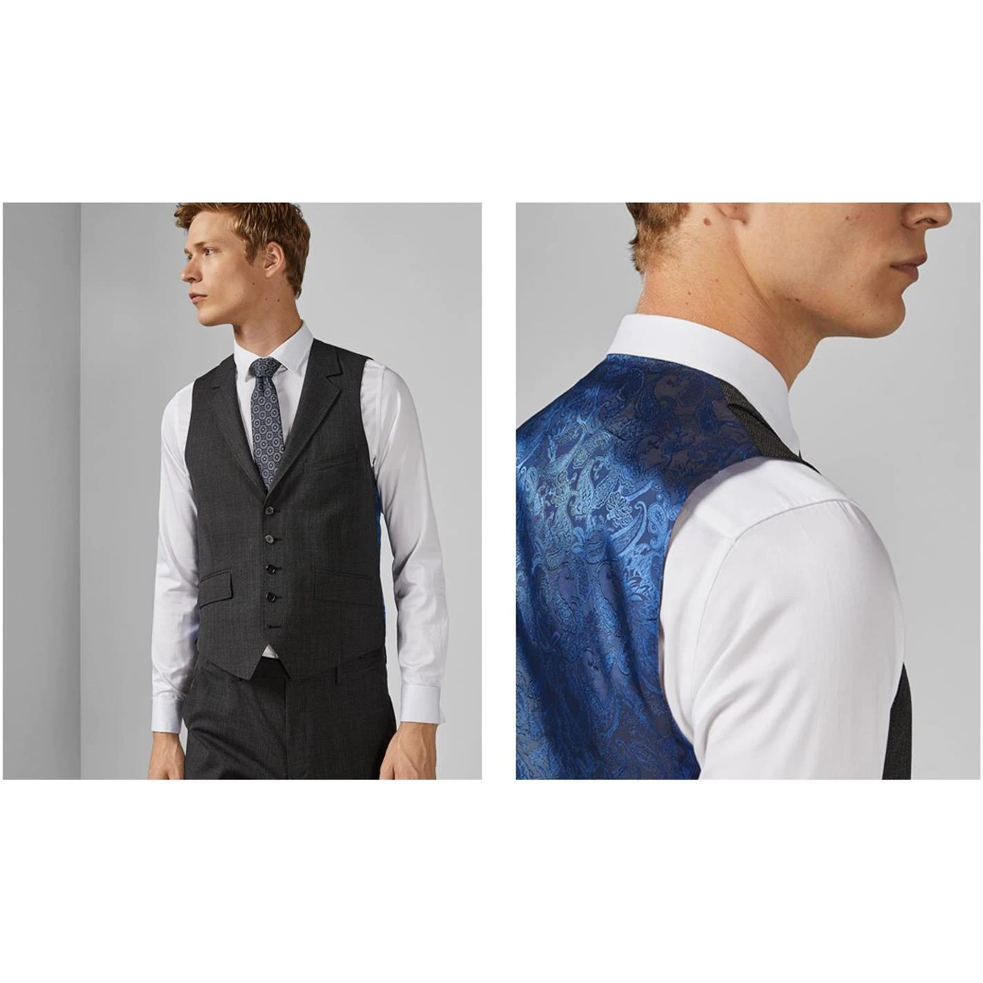 Elevate your collection with this Ted Baker Waistcoat. Crafted with a notch lapel collar and button fastening for a secure fit, it is a sleeveless style featuring three pockets for a classic look. This waistcoat is a solid colouring with a printed back and is complete with Ted Baker branding.