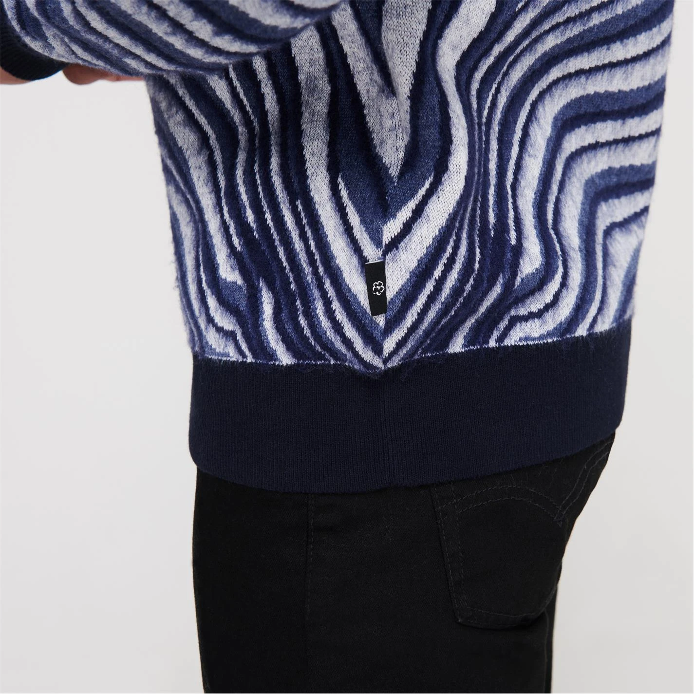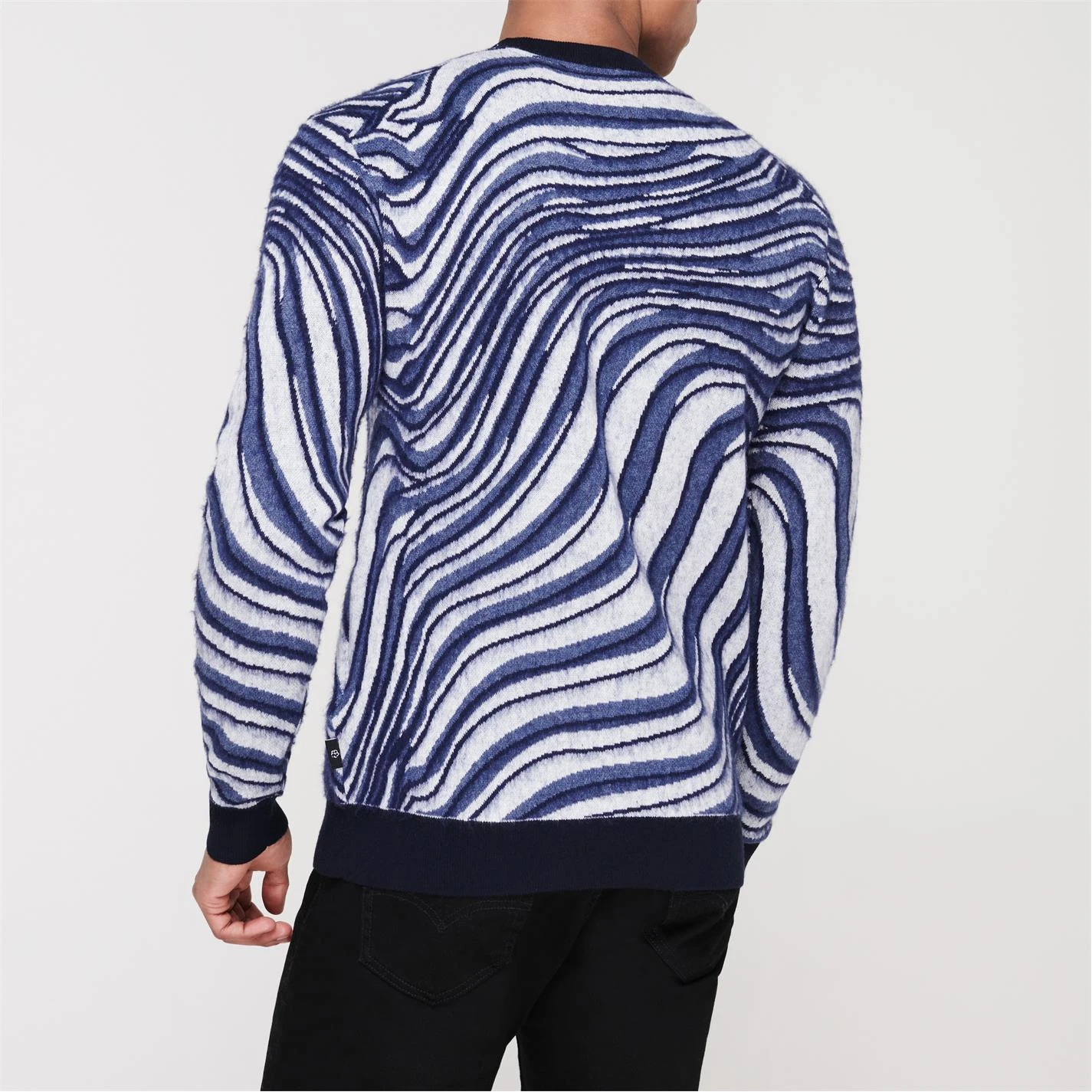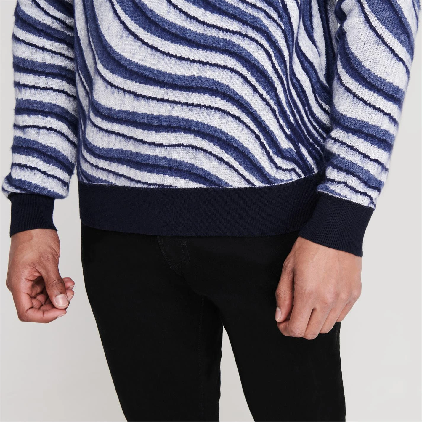 Update your knitwear selection with the Ted Baker Warfe Jaquard Crewneck Sweater. A cotton wool blend with long sleeves and a crew neckline to help achieve a classic look. The all-over wave striped pattern offers a trendy aesthetic that will compliment your everyday fits.